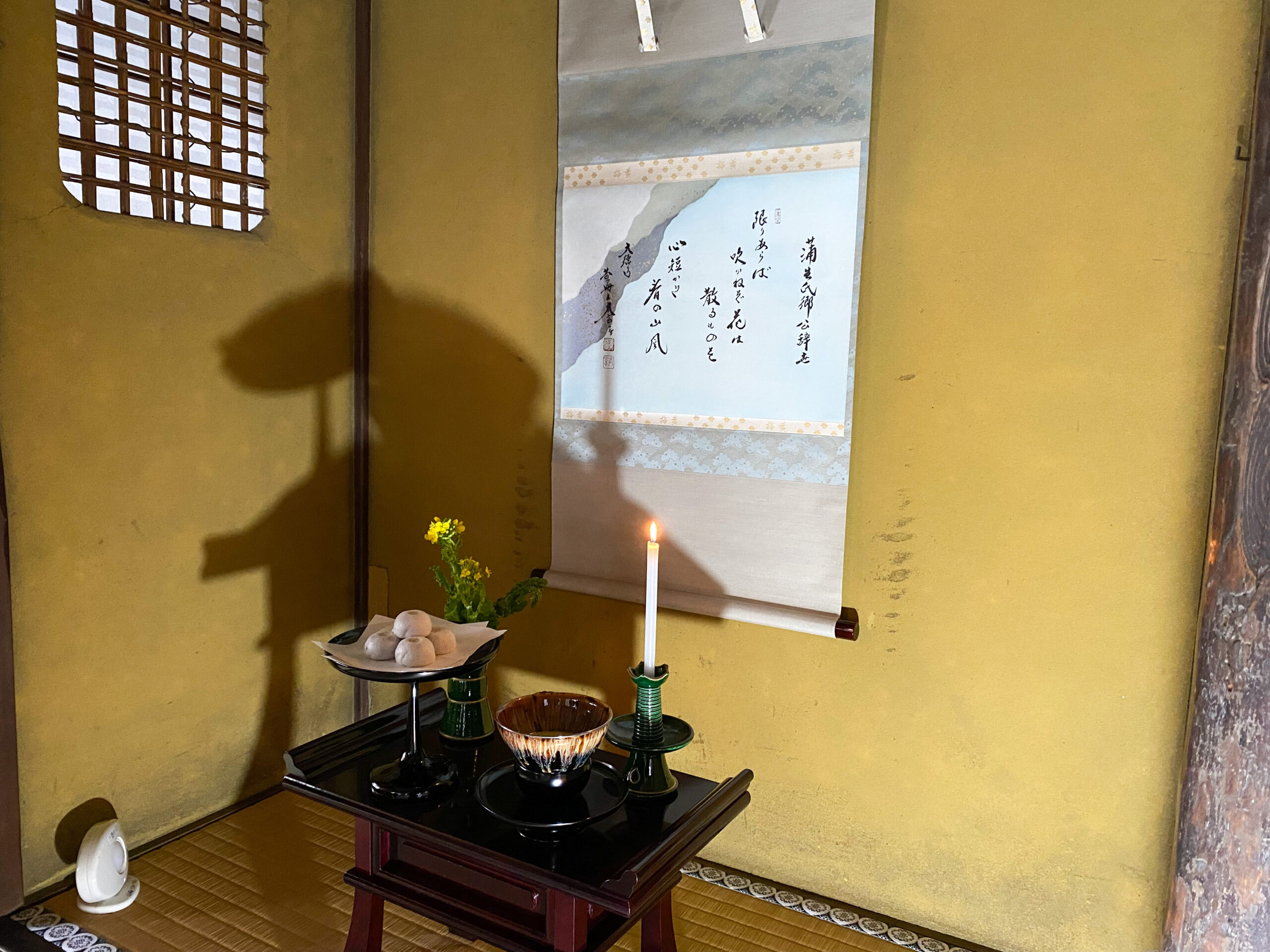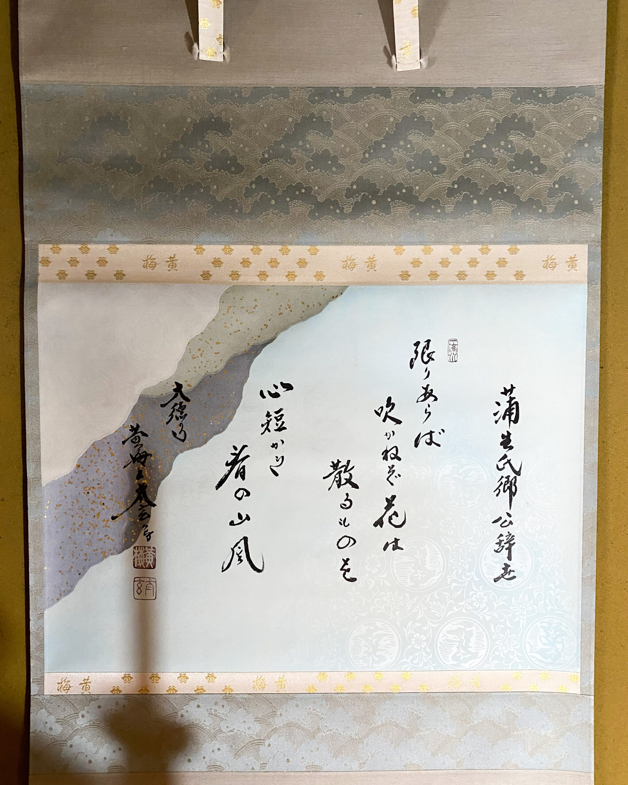 2月7日は「氏郷忌(蒲生氏郷公 忌日)」です 2026年2月7日 本日2月7日は、会津の藩主であった蒲生氏郷公の忌日「氏郷忌」です。 茶室麟閣では、献茶・献花ならびに薯蕷饅頭をお供えし、掛け軸「蒲生氏郷公 辞世の句」を掲げて、氏郷公を偲んでおります。 ご来場の際は、ぜひご覧ください。
