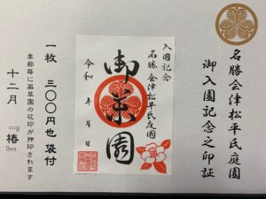 御薬園名勝会津松平氏庭園 御薬園 二月の入園記念印証 -