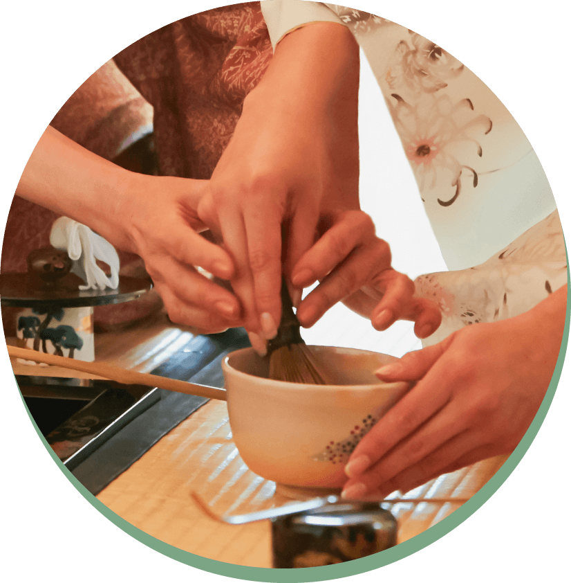 茶道の基本作法に加え、お茶の点て方や茶菓子のいただき方を学びます。実際に自分で抹茶を点て、お菓子とともに楽しめる内容です。茶道の入門編として、気軽に楽しく茶道を学べる体験プログラムです。